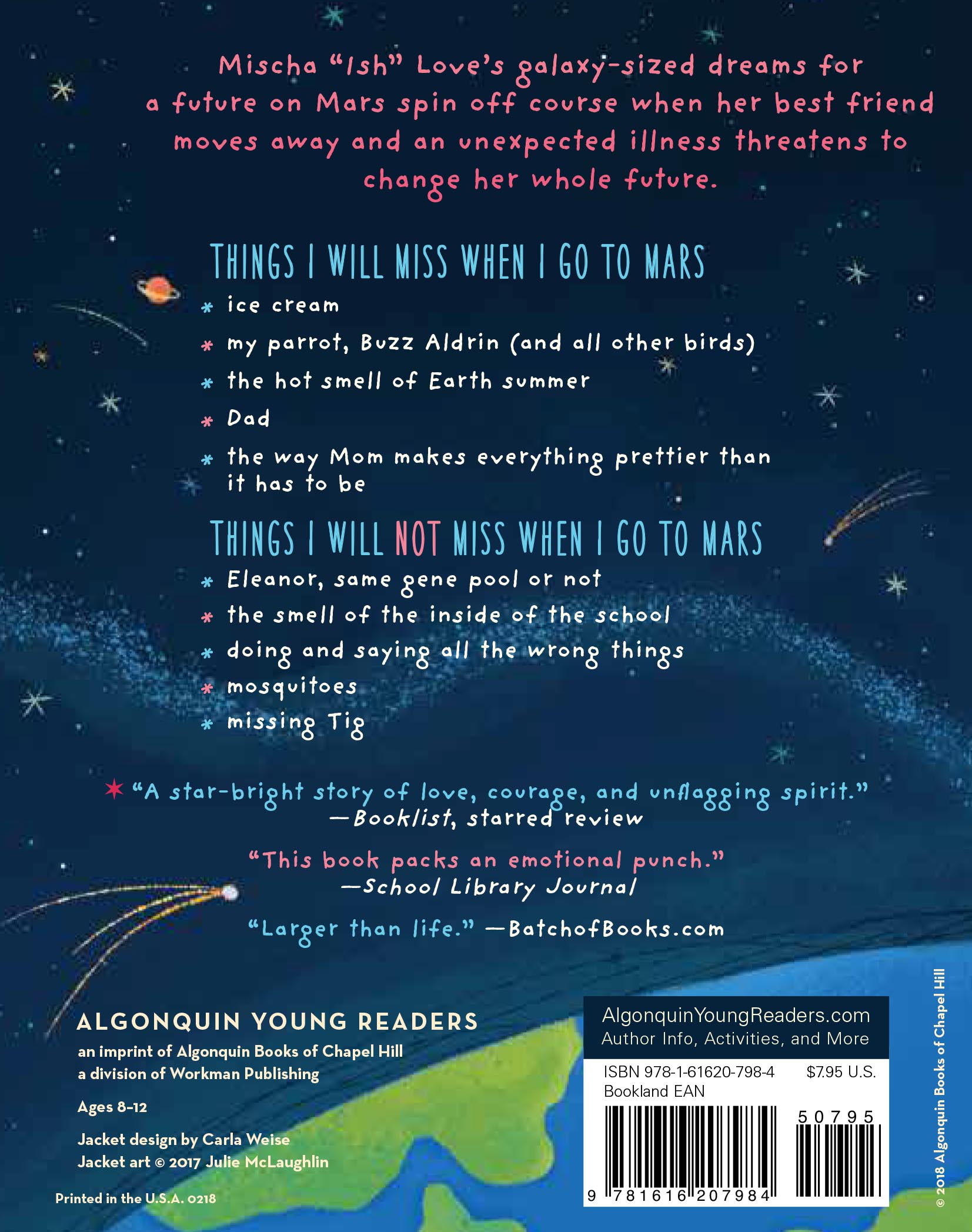My name is Mischa “Ish” Love, and I am twelve years old. I know quite a lot about Mars.Mars is where I belong. Do you know how sometimes you just know a thing? My mom says that falling in love is like that, that the first time she saw Dad, she just knew. That’s how I feel about Mars: I just know.